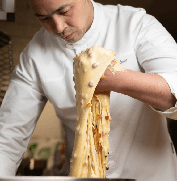 Quelques mois plus tard, Christophe Louie se lance dans la fabrication de son panettone avec du levain traditionnel et des fruits confits qu’il sélectionne avec soin.