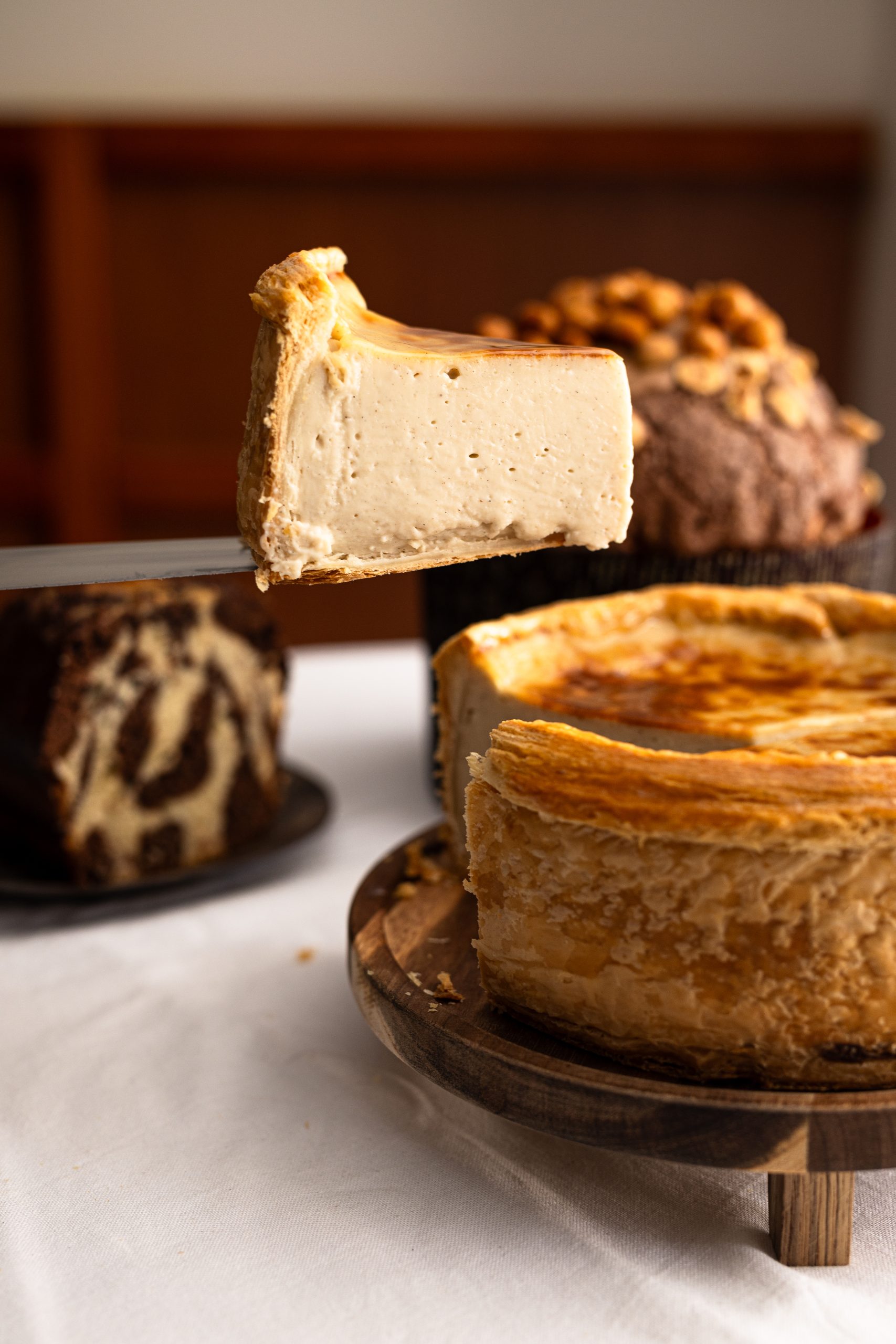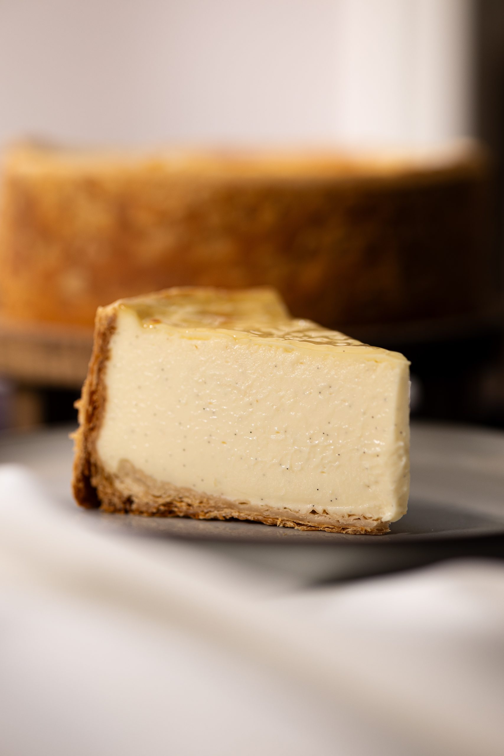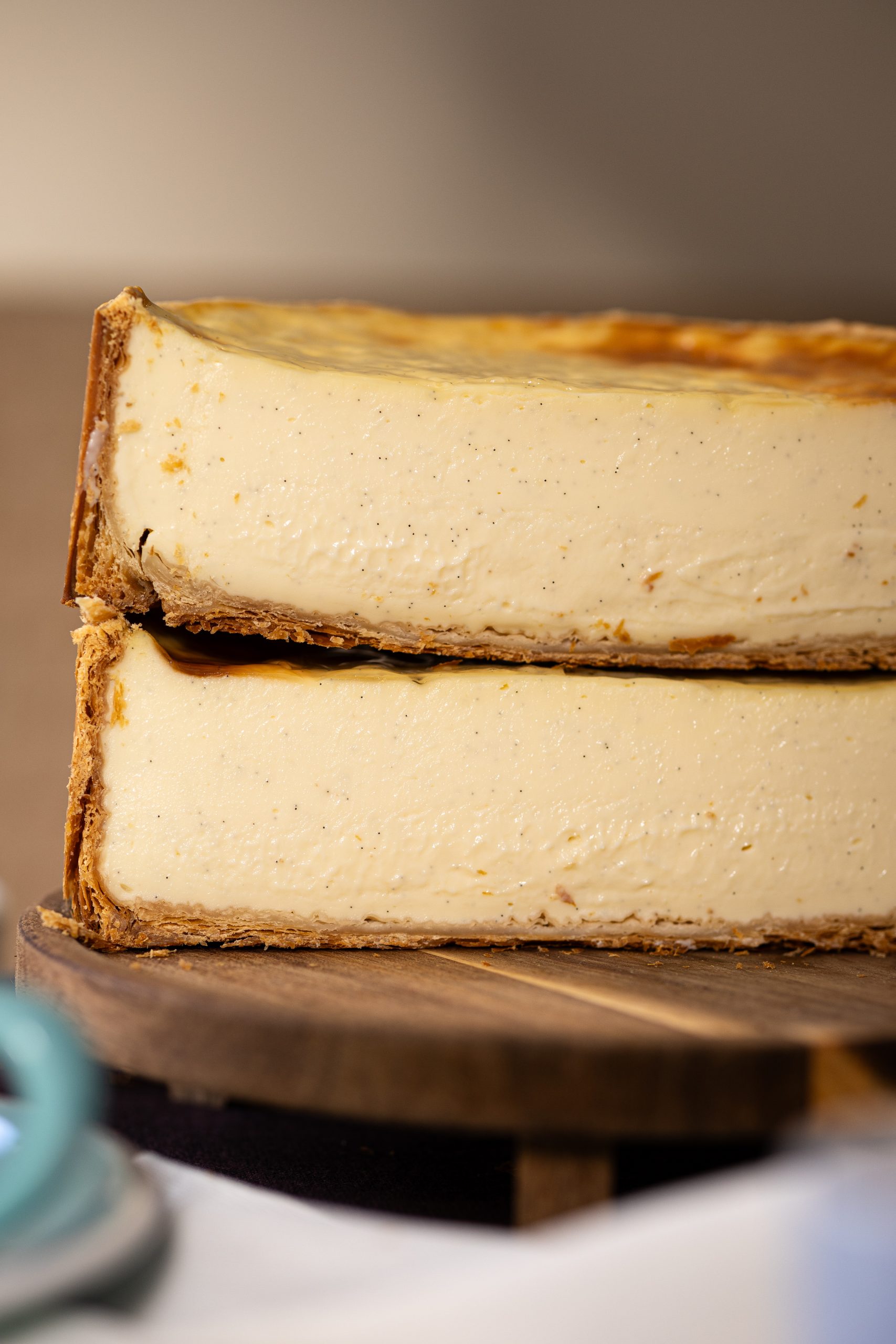 Qu’est-ce qu’un bon flan selon moi ? Une pâte croustillante, ici une pâte feuilletée inversée avec un léger goût de torréfié – un appareil pas trop gras, ni trop ferme ni trop crémeux pour éviter de tomber dans l’esprit « crème brulée » – et enfin une bonne cuisson suivi d’un glaçage maison.